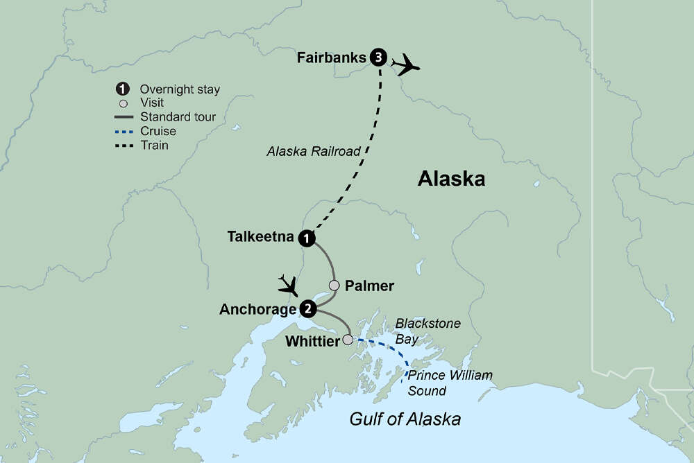 - Enjoy a scenic ride from Talkeetna to Fairbanks via Alaska Railroad.