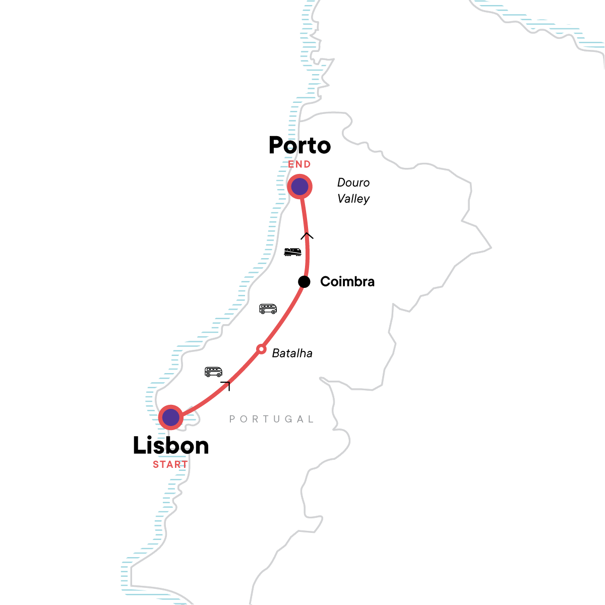In Portugal, the sun is bright, the food is delicious, and the living is easy. Wander the hilly streets of coastal Lisbon, where you can munch on a custard tart while gazing at sun-dappled architecture. Get your fill of history and culture at UNESCO World Heritage Sites like the Monastery of Batalha, Coimbra University, and the picturesque town of Sintra (optional). End the tour in Porto, where the majestic Douro Valley begs for you to lounge back with a glass of port wine in hand. Felicidades! And welcome to Portugal.