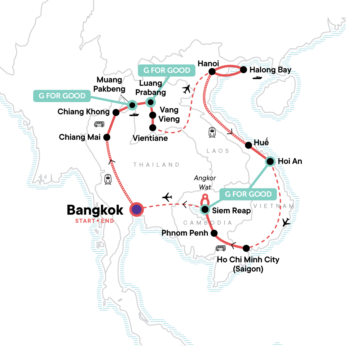 From the vibrant cityscape of Bangkok to Halong Bay's magnificent limestone karsts, this trip encompasses the highlights of Southeast Asia. Marvel at the wonders of Angkor Wat, and savour noodles in Hoi An. Shop for souvenirs in Ho Chi Minh City and join the locals sipping coffee at a lakeside café in Hanoi. With hotels, transport, and a number of included activities arranged by our CEOs, this adventure offers up the perfect combination of must-see highlights and free time.