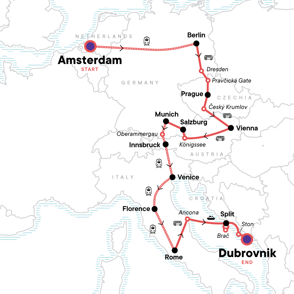23 days. 13 of Europe’s most iconic cities. You in? Yeah you are. Make your way from Amsterdam to Dubrovnik on this hostel-based adventure that’ll get you up close and personal with the best of Europe. Like history, art, and architecture? Well, you’ll get plenty of that in Berlin, Vienna, and Prague. Want ridiculously scenic landscapes? A walk across Europe’s highest natural rock bridge should certainly do the trick. And if you’re looking to get totally immersed in local cultures, we think a foodie excursion in Rome, medieval town wandering, and Croatian island hopping should definitely hit the spot.